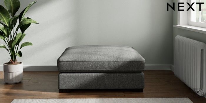 7.2.6 Buy Stamford Grand Relaxed Sit Extra Large Footstool Tweedy Chenille Dark Grey Square Angle - Dark from the Laura Ashley online shop Click here to use our website with more accessibility support, for example screen readers