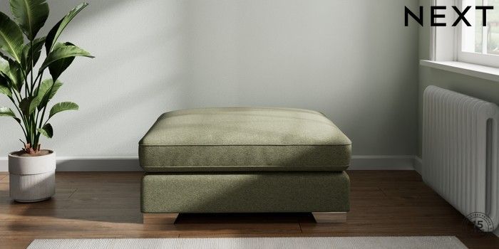 7.2.6 Buy Stamford Grand Relaxed Sit Extra Large Footstool Tweedy Chenille Mid Moss Green Square Angle - Chrome Metal from the Laura Ashley online shop Click here to use our website with more accessibility support, for example screen readers