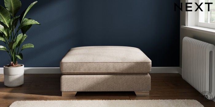 7.2.6 Buy Stamford Grand Relaxed Sit Extra Large Footstool Tweedy Chenille Mid Natural Square Angle - Chrome Metal from the Laura Ashley online shop Click here to use our website with more accessibility support, for example screen readers