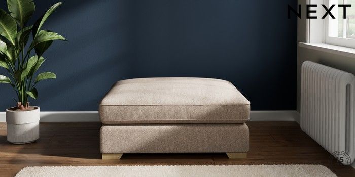 7.2.6 Buy Stamford Grand Relaxed Sit Extra Large Footstool Tweedy Chenille Mid Natural Square Angle - Light from the Laura Ashley online shop Click here to use our website with more accessibility support, for example screen readers