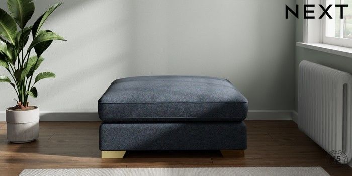 7.2.6 Buy Stamford Grand Relaxed Sit Extra Large Footstool Tweedy Chenille Navy Blue Square Angle - Brushed Brass from the Laura Ashley online shop Click here to use our website with more accessibility support, for example screen readers
