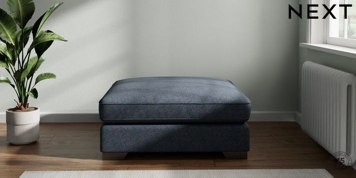 7.2.6 Buy Stamford Grand Relaxed Sit Extra Large Footstool Tweedy Chenille Navy Blue Square Angle - Gunmetal from the Laura Ashley online shop Click here to use our website with more accessibility support, for example screen readers