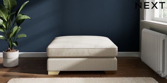 7.2.6 Buy Stamford Grand Relaxed Sit Extra Large Footstool Tweedy Chenille Oyster Square Angle - Brushed Brass from the Laura Ashley online shop Click here to use our website with more accessibility support, for example screen readers