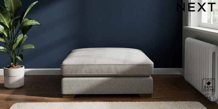 7.2.6 Buy Stamford Grand Relaxed Sit Extra Large Footstool Woven Chenille Easy Clean Light Grey Square Angle - Mid from the Laura Ashley online shop Click here to use our website with more accessibility support, for example screen readers