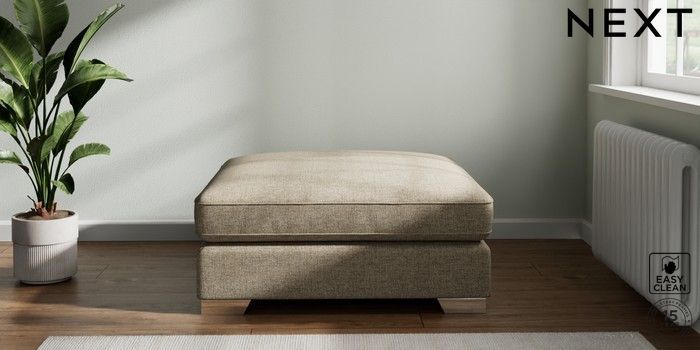 7.2.6 Buy Stamford Grand Relaxed Sit Extra Large Footstool Woven Chenille Easy Clean Mid Natural Square Angle - Chrome Metal from the Laura Ashley online shop Click here to use our website with more accessibility support, for example screen readers