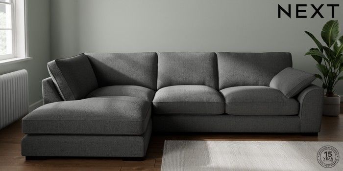 7.3.1 Buy Stamford Grand Relaxed Sit Large Corner Chaise - Left Hand Chunky Texture Dark Grey Large Square Angle - Dark from the Laura Ashley online shop