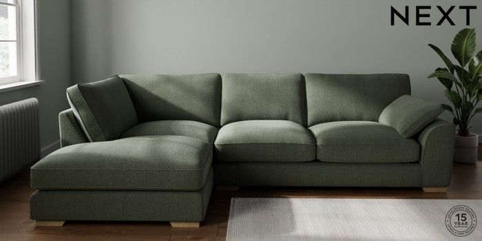 7.3.1 Buy Stamford Grand Relaxed Sit Large Corner Chaise - Left Hand Chunky Texture Mid Forest Green Large Square Angle - Light from the Laura Ashley online shop