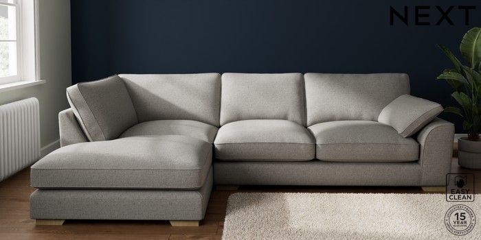 7.3.1 Buy Stamford Grand Relaxed Sit Large Corner Chaise - Left Hand Woven Chenille Easy Clean Light Grey Large Square Angle - Light from the Laura Ashley online shop Click here to use our website with more accessibility support, for example screen readers