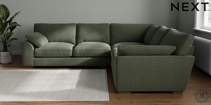 7.3.1 Buy Stamford Grand Relaxed Sit Large Corner Sofa - Universal Chunky Texture Mid Forest Green Large Square Angle - Mid from the Laura Ashley online shop Click here to use our website with more accessibility support, for example screen readers