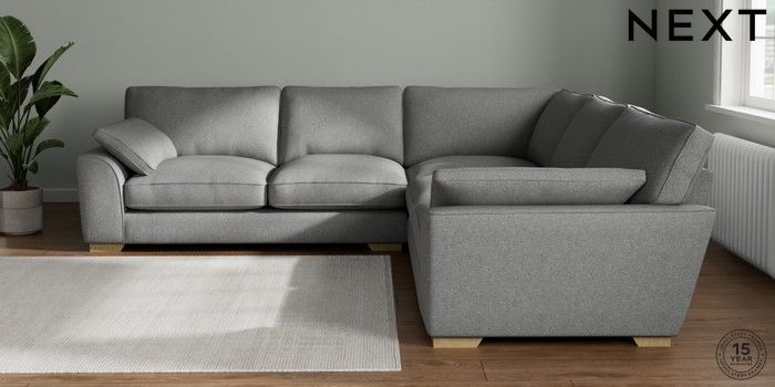 7.3.1 Buy Stamford Grand Relaxed Sit Large Corner Sofa - Universal Chunky Weave Mid Grey Large Square Angle - Light from the Laura Ashley online shop