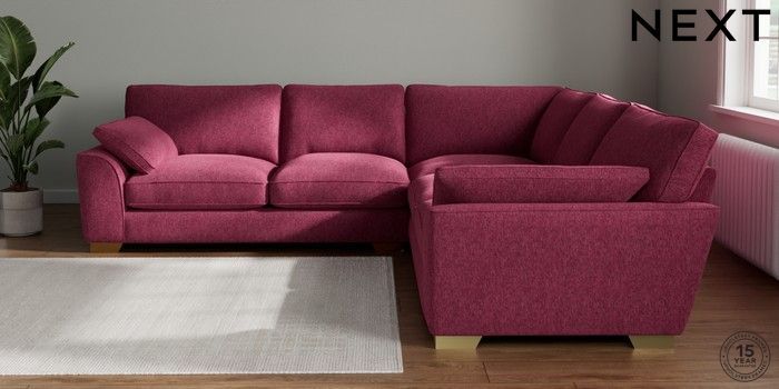 7.3.1 Buy Stamford Grand Relaxed Sit Large Corner Sofa - Universal Cotswold Chenille Dark Raspberry Pink Large Square Angle - Brushed Brass from the Laura Ashley online shop Click here to use our website with more accessibility support, for example screen readers