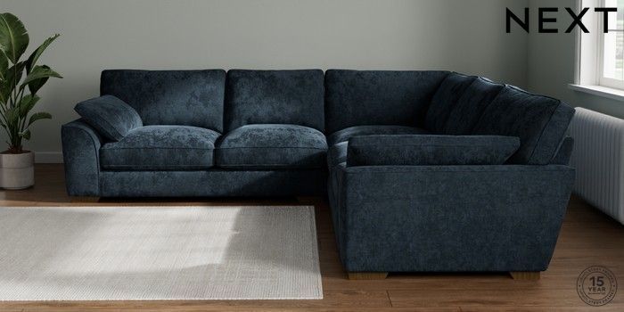 7.3.1 Buy Stamford Grand Relaxed Sit Large Corner Sofa - Universal Distressed Velour Midnight Blue Large Square Angle - Mid from the Laura Ashley online shop Click here to use our website with more accessibility support, for example screen readers