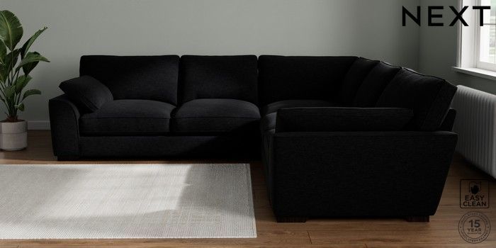 7.3.1 Buy Stamford Grand Relaxed Sit Large Corner Sofa - Universal Fine Chenille Easy Clean Black Large Square Angle - Dark from the Laura Ashley online shop Click here to use our website with more accessibility support, for example screen readers