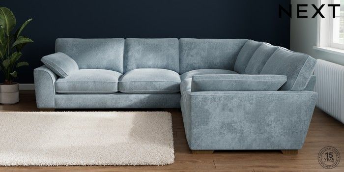 7.3.1 Buy Stamford Grand Relaxed Sit Large Corner Sofa - Universal Plush Chenille Light Blue Large Square Angle - Mid from the Laura Ashley online shop
