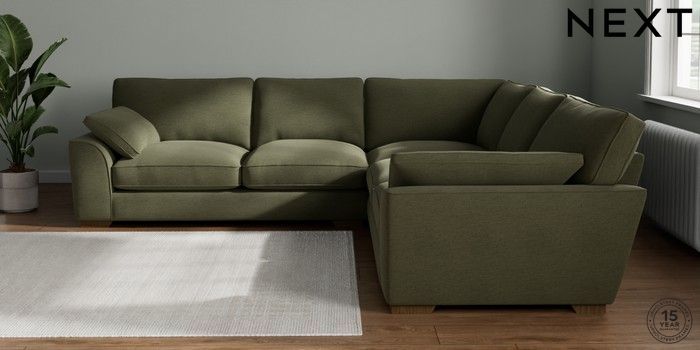 7.3.1 Buy Stamford Grand Relaxed Sit Large Corner Sofa - Universal Ripple Chenille Mid Moss Green Large Square Angle - Mid from the Laura Ashley online shop