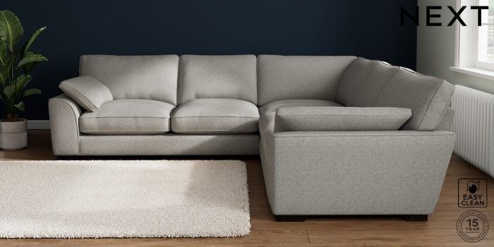 7.3.1 Buy Stamford Grand Relaxed Sit Large Corner Sofa - Universal Woven Chenille Easy Clean Light Grey Large Square Angle - Dark from the Laura Ashley online shop Click here to use our website with more accessibility support, for example screen readers