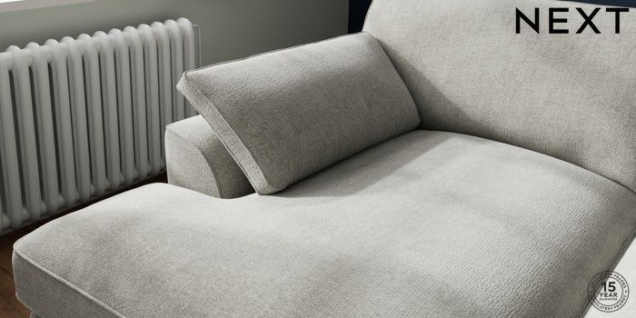7.3.1 Buy Stamford Grand Relaxed Sit Large Sofa Chaise - Left Hand Chunky Chenille Light Grey Large Square Angle - Mid from the Laura Ashley online shop