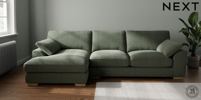 7.3.1 Buy Stamford Grand Relaxed Sit Large Sofa Chaise - Left Hand Chunky Texture Mid Forest Green Large Square Angle - Light from the Laura Ashley online shop Click here to use our website with more accessibility support, for example screen readers