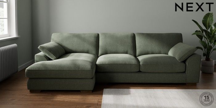 7.3.1 Buy Stamford Grand Relaxed Sit Large Sofa Chaise - Left Hand Chunky Texture Mid Forest Green Large Square Angle - Mid from the Laura Ashley online shop Click here to use our website with more accessibility support, for example screen readers