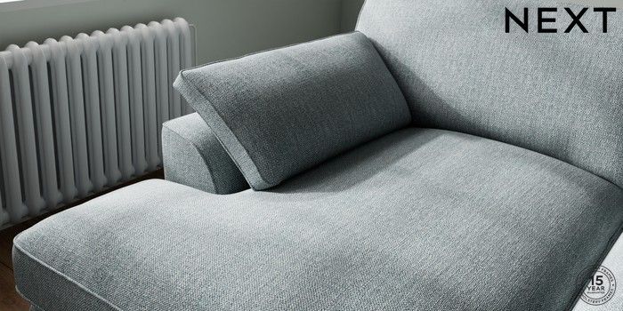7.3.1 Buy Stamford Grand Relaxed Sit Large Sofa Chaise - Left Hand Chunky Weave Mid Blue Large Square Angle - Light from the Laura Ashley online shop Click here to use our website with more accessibility support, for example screen readers