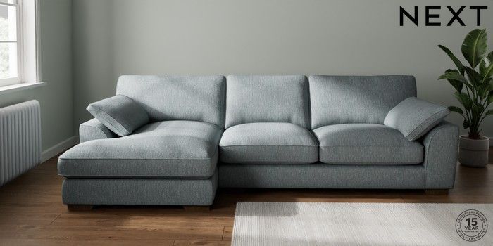 7.3.1 Buy Stamford Grand Relaxed Sit Large Sofa Chaise - Left Hand Chunky Weave Mid Blue Large Square Angle - Mid from the Laura Ashley online shop Click here to use our website with more accessibility support, for example screen readers