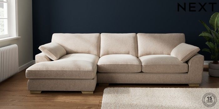 7.3.1 Buy Stamford Grand Relaxed Sit Large Sofa Chaise - Left Hand Cotswold Chenille Light Natural Large Square Angle - Light from the Laura Ashley online shop Click here to use our website with more accessibility support, for example screen readers