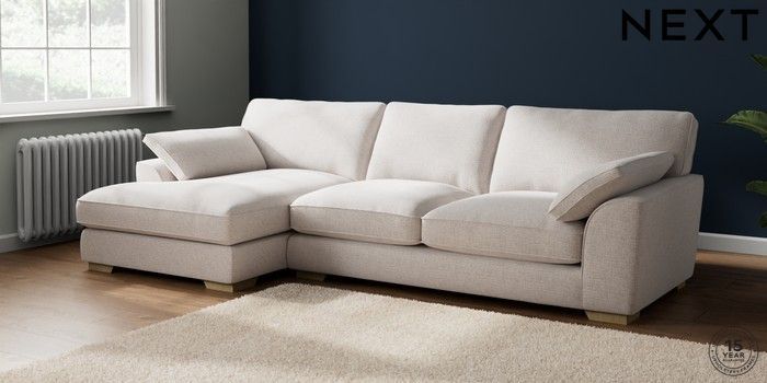 7.2.6 Buy Stamford Grand Relaxed Sit Large Sofa Chaise - Left Hand Multi Weave Oyster Large Square Angle - Light from the Laura Ashley online shop Click here to use our website with more accessibility support, for example screen readers