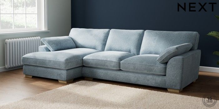 7.2.6 Buy Stamford Grand Relaxed Sit Large Sofa Chaise - Left Hand Plush Chenille Light Blue Large Square Angle - Light from the Laura Ashley online shop Click here to use our website with more accessibility support, for example screen readers