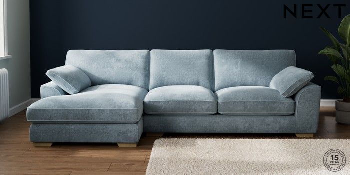 7.3.1 Buy Stamford Grand Relaxed Sit Large Sofa Chaise - Left Hand Plush Chenille Light Blue Large Square Angle - Light from the Laura Ashley online shop