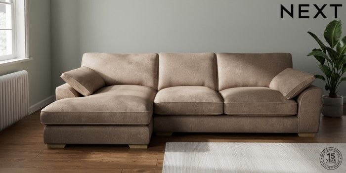 7.3.1 Buy Stamford Grand Relaxed Sit Large Sofa Chaise - Left Hand Plush Chenille Mid Natural Large Square Angle - Light from the Laura Ashley online shop Click here to use our website with more accessibility support, for example screen readers