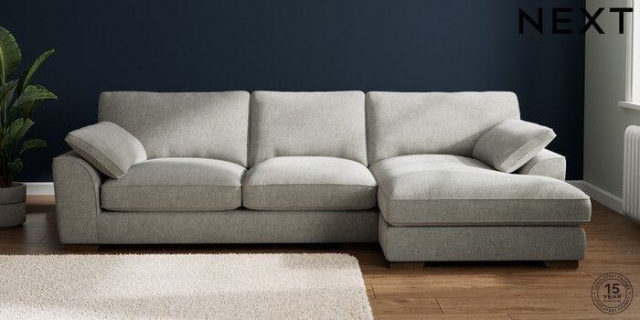 7.3.1 Buy Stamford Grand Relaxed Sit Large Sofa Chaise - Right Hand Chunky Chenille Light Grey Large Square Angle - Mid from the Laura Ashley online shop Click here to use our website with more accessibility support, for example screen readers
