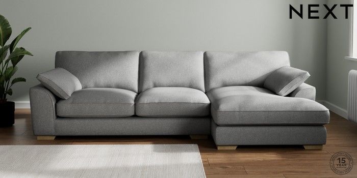 7.3.1 Buy Stamford Grand Relaxed Sit Large Sofa Chaise - Right Hand Chunky Weave Mid Grey Large Square Angle - Light from the Laura Ashley online shop