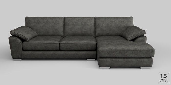 6.11.4 Buy Stamford Grand Relaxed Sit Large Sofa Chaise - Right Hand Monza Faux Leather Easy Clean Dark Grey Large Square Angle - Chrome Metal from the Laura Ashley online shop Click here to use our website with more accessibility support, for example screen readers
