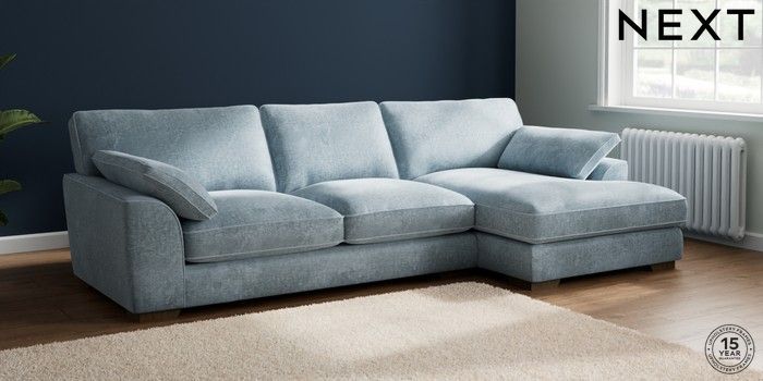 7.2.6 Buy Stamford Grand Relaxed Sit Large Sofa Chaise - Right Hand Plush Chenille Light Blue Large Square Angle - Mid from the Laura Ashley online shop Click here to use our website with more accessibility support, for example screen readers