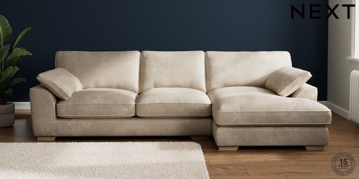 7.3.1 Buy Stamford Grand Relaxed Sit Large Sofa Chaise - Right Hand Plush Chenille Light Natural Large Square Angle - Light from the Laura Ashley online shop