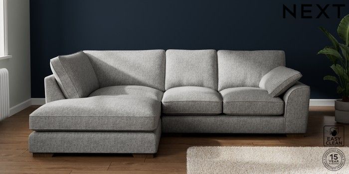 7.3.1 Buy Stamford Grand Relaxed Sit Medium Corner Chaise - Left Hand Chunky Boucle Easy Clean Light Grey Large Square Angle - Mid from the Laura Ashley online shop Click here to use our website with more accessibility support, for example screen readers