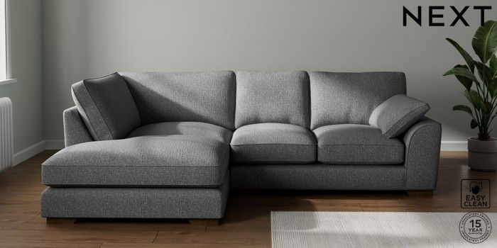 7.3.1 Buy Stamford Grand Relaxed Sit Medium Corner Chaise - Left Hand Chunky Boucle Easy Clean Mid Grey Large Square Angle - Mid from the Laura Ashley online shop Click here to use our website with more accessibility support, for example screen readers