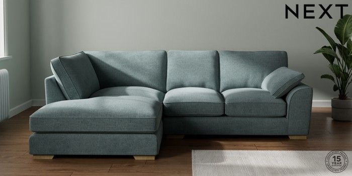 7.3.1 Buy Stamford Grand Relaxed Sit Medium Corner Chaise - Left Hand Chunky Chenille Light Teal Green Large Square Angle - Light from the Laura Ashley online shop Click here to use our website with more accessibility support, for example screen readers