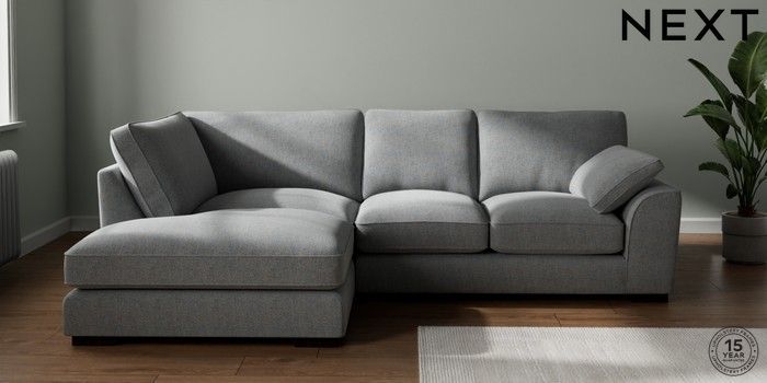 7.3.1 Buy Stamford Grand Relaxed Sit Medium Corner Chaise - Left Hand Chunky Marl Mid Grey Large Square Angle - Dark from the Laura Ashley online shop Click here to use our website with more accessibility support, for example screen readers