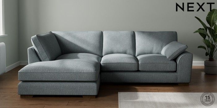 7.3.1 Buy Stamford Grand Relaxed Sit Medium Corner Chaise - Left Hand Chunky Weave Mid Blue Large Square Angle - Mid from the Laura Ashley online shop Click here to use our website with more accessibility support, for example screen readers
