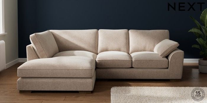 7.3.1 Buy Stamford Grand Relaxed Sit Medium Corner Chaise - Left Hand Cotswold Chenille Light Natural Large Square Angle - Mid from the Laura Ashley online shop Click here to use our website with more accessibility support, for example screen readers