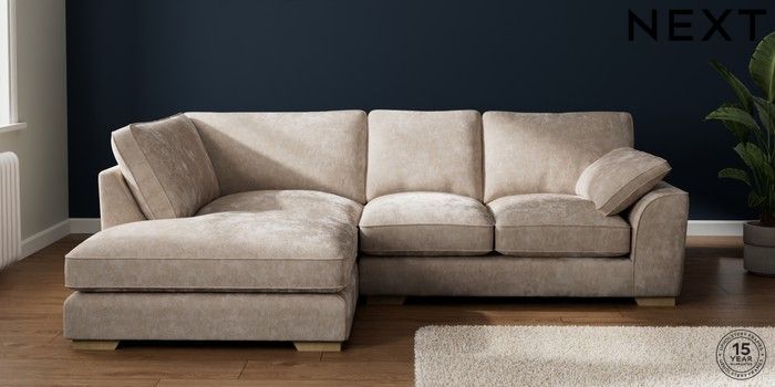 7.3.1 Buy Stamford Grand Relaxed Sit Medium Corner Chaise - Left Hand Distressed Velour Mid Natural Large Square Angle - Light from the Laura Ashley online shop Click here to use our website with more accessibility support, for example screen readers
