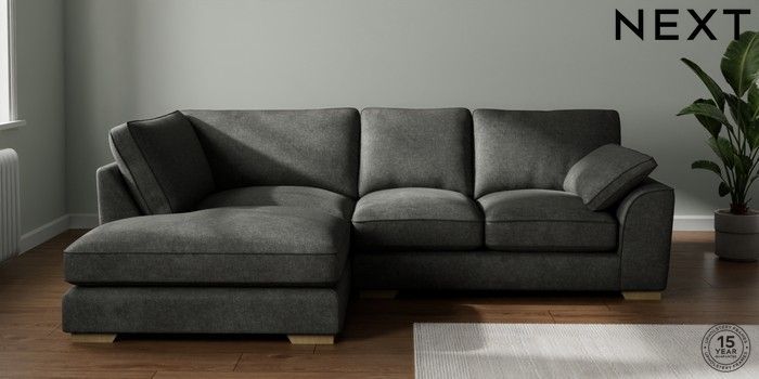 7.3.1 Buy Stamford Grand Relaxed Sit Medium Corner Chaise - Left Hand Plush Chenille Dark Grey Large Square Angle - Light from the Laura Ashley online shop