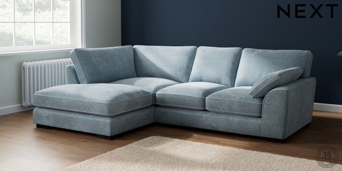 7.2.6 Buy Stamford Grand Relaxed Sit Medium Corner Chaise - Left Hand Plush Chenille Light Blue Large Square Angle - Dark from the Laura Ashley online shop Click here to use our website with more accessibility support, for example screen readers