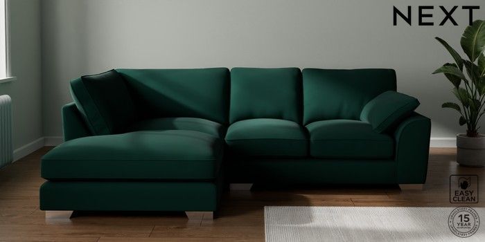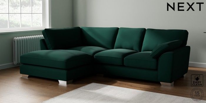 7.3.1 Buy Stamford Grand Relaxed Sit Medium Corner Chaise - Left Hand Plush Velvet Easy Clean Bottle Green Large Square Angle - Chrome Metal from the Laura Ashley online shop