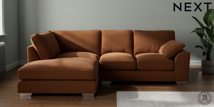 7.3.1 Buy Stamford Grand Relaxed Sit Medium Corner Chaise - Left Hand Ripple Chenille Mid Rust Brown Large Square Angle - Chrome Metal from the Laura Ashley online shop Click here to use our website with more accessibility support, for example screen readers