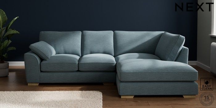 7.3.1 Buy Stamford Grand Relaxed Sit Medium Corner Chaise - Right Hand Fine Chenille Easy Clean Mid Blue Large Square Angle - Light from the Laura Ashley online shop Click here to use our website with more accessibility support, for example screen readers