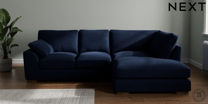 7.3.1 Buy Stamford Grand Relaxed Sit Medium Corner Chaise - Right Hand Luxe Chenille Navy Blue Large Square Angle - Mid from the Laura Ashley online shop Click here to use our website with more accessibility support, for example screen readers