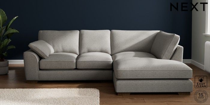 7.3.1 Buy Stamford Grand Relaxed Sit Medium Corner Chaise - Right Hand Woven Chenille Easy Clean Light Grey Large Square Angle - Mid from the Laura Ashley online shop Click here to use our website with more accessibility support, for example screen readers