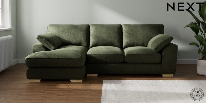7.3.1 Buy Stamford Grand Relaxed Sit Medium Sofa Chaise - Left Hand Boucle Chenille Dark Moss Green Large Square Angle - Light from the Laura Ashley online shop Click here to use our website with more accessibility support, for example screen readers